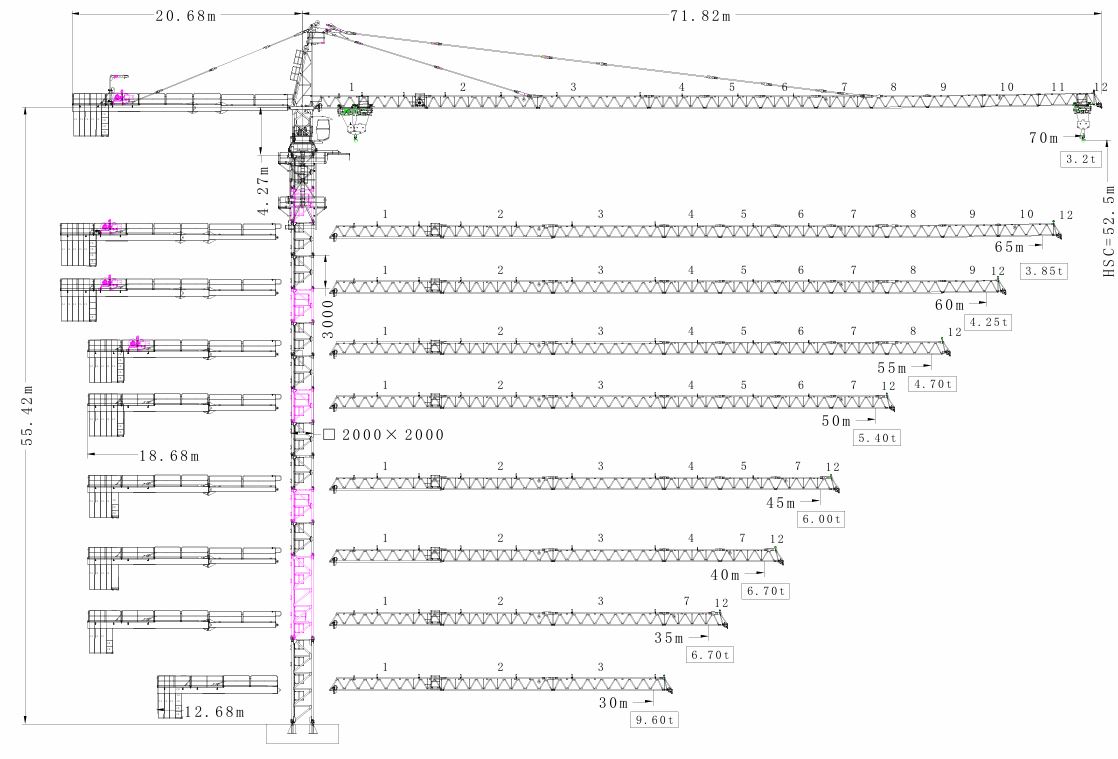 Cẩu tháp QTZ250 (TC7032) là một trong những dòng cẩu tháp tải trọng lớn, được thiết kế nhằm đáp ứng yêu cầu thi công hiện đại với: